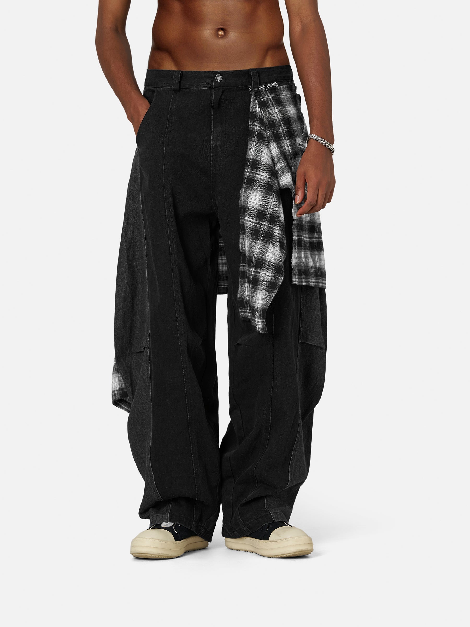Plaid Baggy Barrel Jeans
